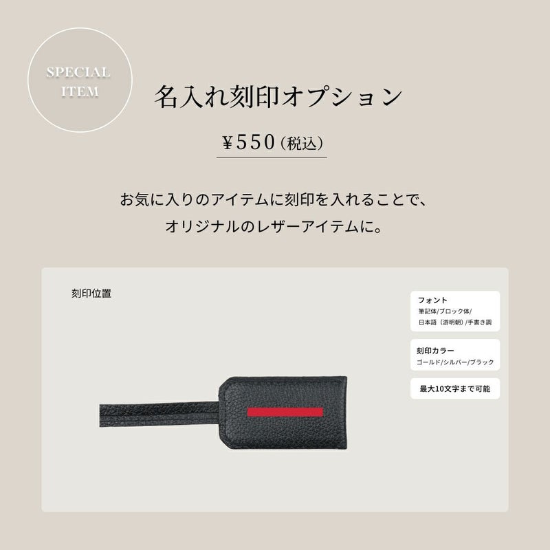 この商品にも名入れ刻印できますか? 承っております。名入れ刻印はもちろん、手書き刻印(イラスト)や写真刻印をすることでオリジナルのタグを作成することも可能です。 (写真刻印は一部の直営店舗でのみ承っております)"