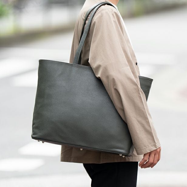 開口にファスナー付きのマチがあるので、中身が見えたり落ちる心配がありません。