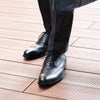つま先のキャップ部分が一文字になっているストレートチップ。革靴の中でも最も格式が高く、フォーマルな印象があります。冠婚葬祭からビジネスシーンまで幅広く使用できます。