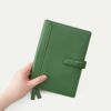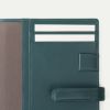 A5ノートカバーとの違いは? 「手帳カバー」は、便利なカードポケットが2室とフリーポケット1室付きで、しおり紐も2本あるため、より整理しやすく使いやすい設計です。さらに、ベルトでしっかりと留める仕様になっているので、バッグの中で勝手に開かず、きれいに閉じた状態を美しくキープします。一方、「ノートカバー」はカードポケット2室としおり紐1本のみで、シンプルさを重視しています。