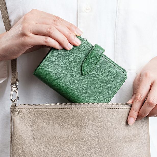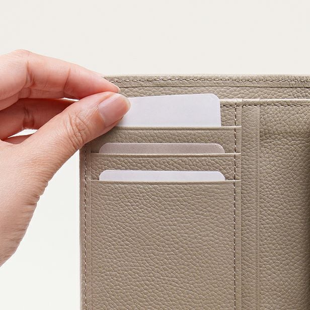 頻繁に使うカードを収納できるよう、外ポケットを追加。カードを入れると見えにくいちょうどよい深さで、安心して使えます。
