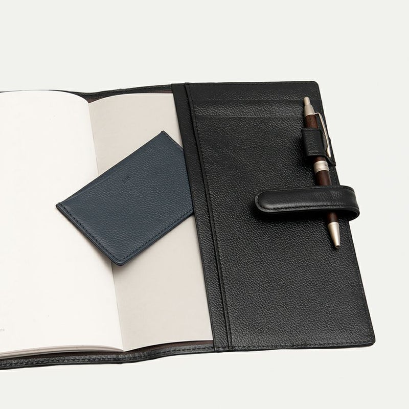 名刺の枚数は少なめでよいけれども、スタイリッシュに持ち歩きたい方におすすめなのがこちらの「スリム名刺入れ」です。手帳や財布にも挟むことができ、メイン収納部分に名刺を約8枚収納可能です。