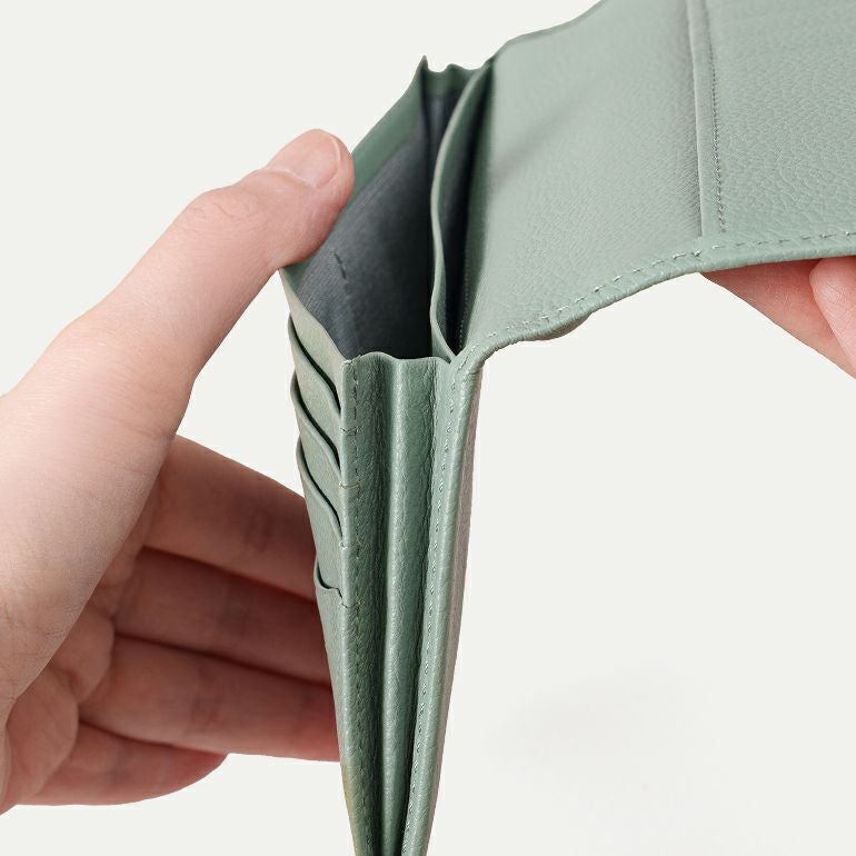 「スリム長財布」はカード類の収納可能枚数が6枚なのに対し、「長財布(小銭入れなし)」はカード類が15枚収納でき、約2.5倍の収納力となっております。