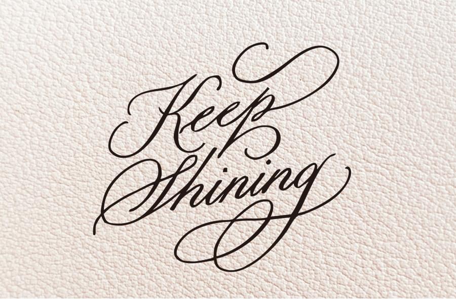 文字を綴ることでメッセージを届け、想いを表現すること。それがカリグラフィーの役割でもありますが、その綴った文字が、温もりを待つ人・小さな動物たちの支援となるのなら、こんなに嬉しいことはありません。『Merci』は可愛いロゴのように、『Keep Shining』はふわりと流れるように綴っています。贈る人、贈られる人が、優しい気持ちになりますように。 -