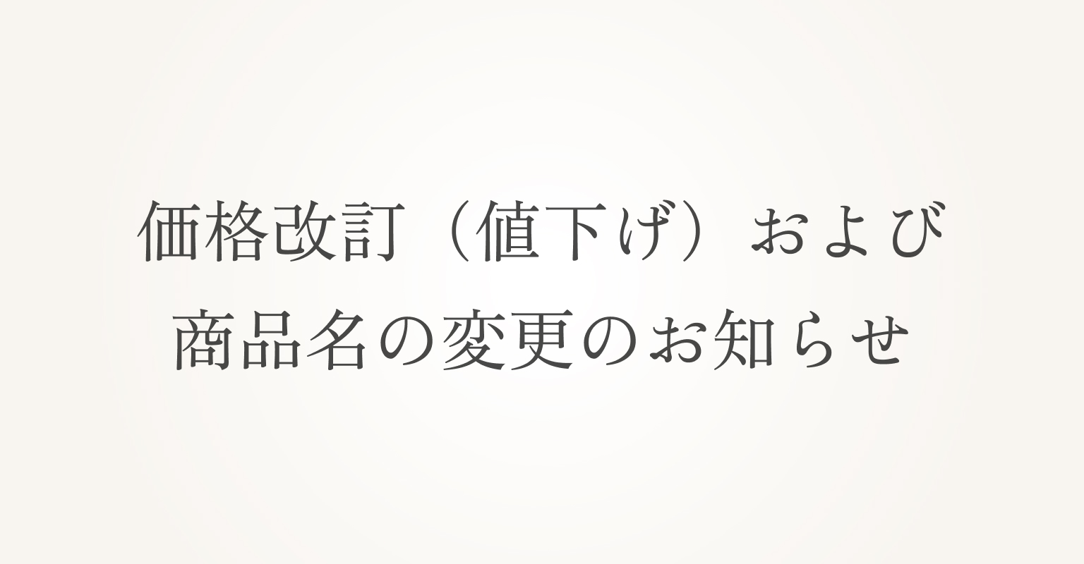 2025年10月16日(木)より、一部商品の価格改訂(値下げ)および商品名の変更を実施することになりましたので、お知らせいたします。