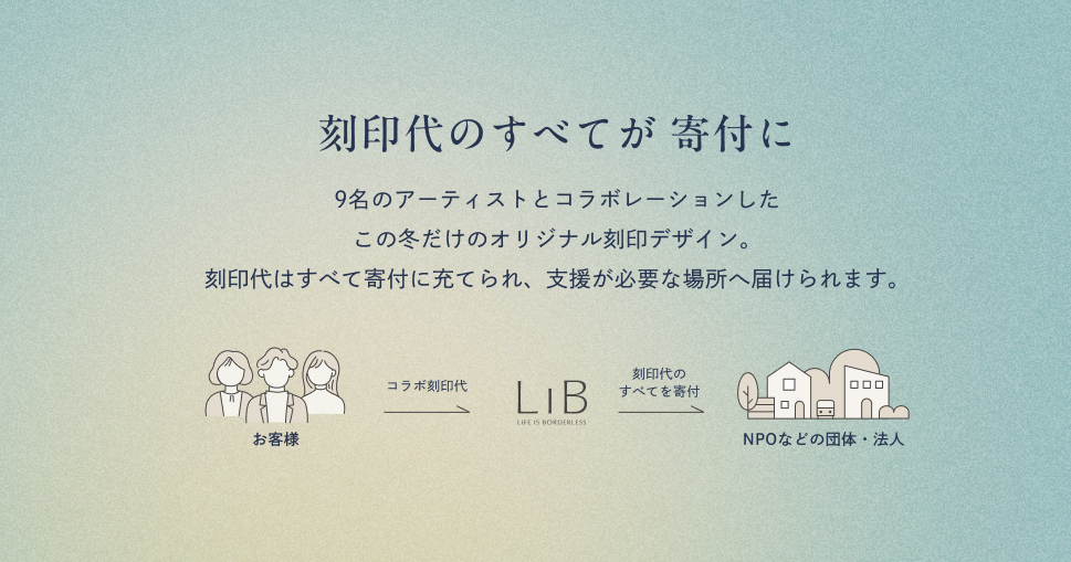 いつもエシカルブランド「LIB」をご愛顧いただき、誠にありがとうございます。2025年12月5日(金)より、9名のアーティストと贈るホリデー企画『コラボ刻印』を開始いたしました。