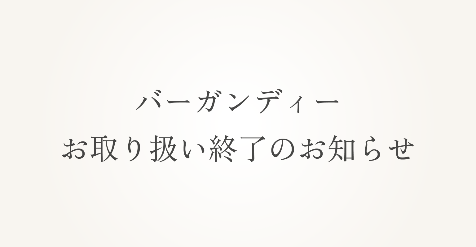 これまで多くのお客様にお選びいただいてきたカラー「バーガンディー」は、在庫がなくなり次第、お取り扱いを終了いたします。