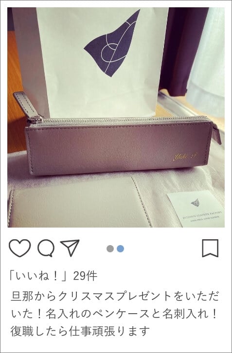 退職する方へ差し上げました。実物を見るまでドキドキでしたが革の滑らかさ感触、色味、刻印してもらった名前も上品な感じで大満足です。