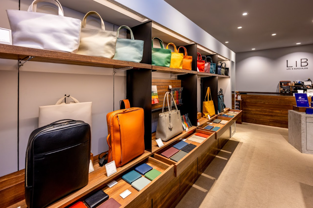 働く人が集まる街に位置する当店は、ビジネスに寄り添う上質なレザーアイテムを揃えています。通勤や外出の合間に立ち寄れる気軽さと、選びやすく、使い続けたくなる安心感。初めてのレザーにも、毎日使う相棒にもふさわしい“ちょうどいい”一品が見つかる場所です。LIBの原点でもある、「働く人の日常にフィットするものづくり」の精神を、まっすぐに伝える店舗です。