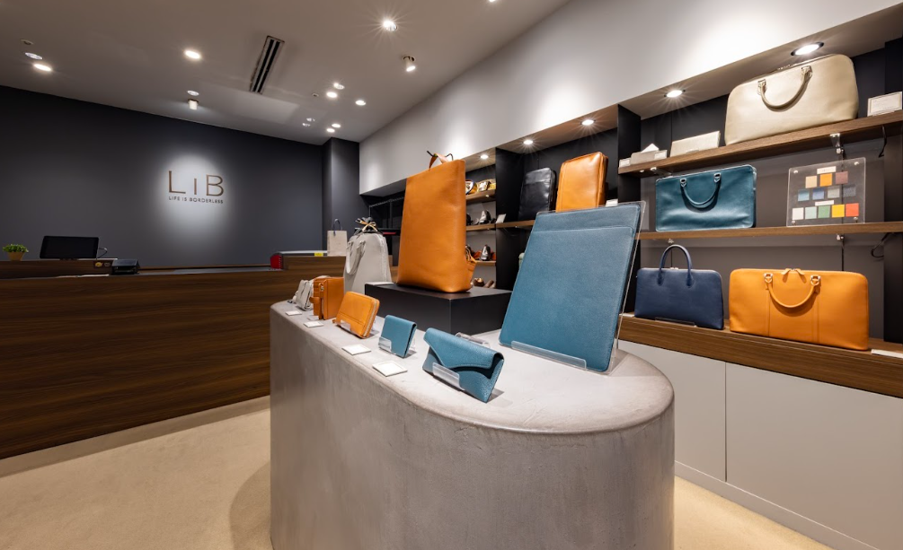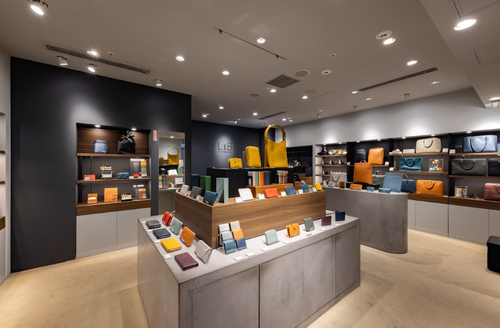 働く人が集まる街に位置する当店は、ビジネスに寄り添う上質なレザーアイテムを揃えています。通勤や外出の合間に立ち寄れる気軽さと、選びやすく、使い続けたくなる安心感。初めてのレザーにも、毎日使う相棒にもふさわしい“ちょうどいい”一品が見つかる場所です。LIBの原点でもある、「働く人の日常にフィットするものづくり」の精神を、まっすぐに伝える店舗です。